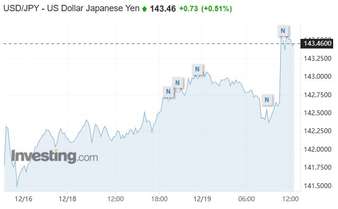 在央行的这一决定公布后,日元开始普遍下跌。日元兑美元一度下跌超过0.6%,盘中低点至143.78;日元兑欧元同样下跌0.6%,至156.88。