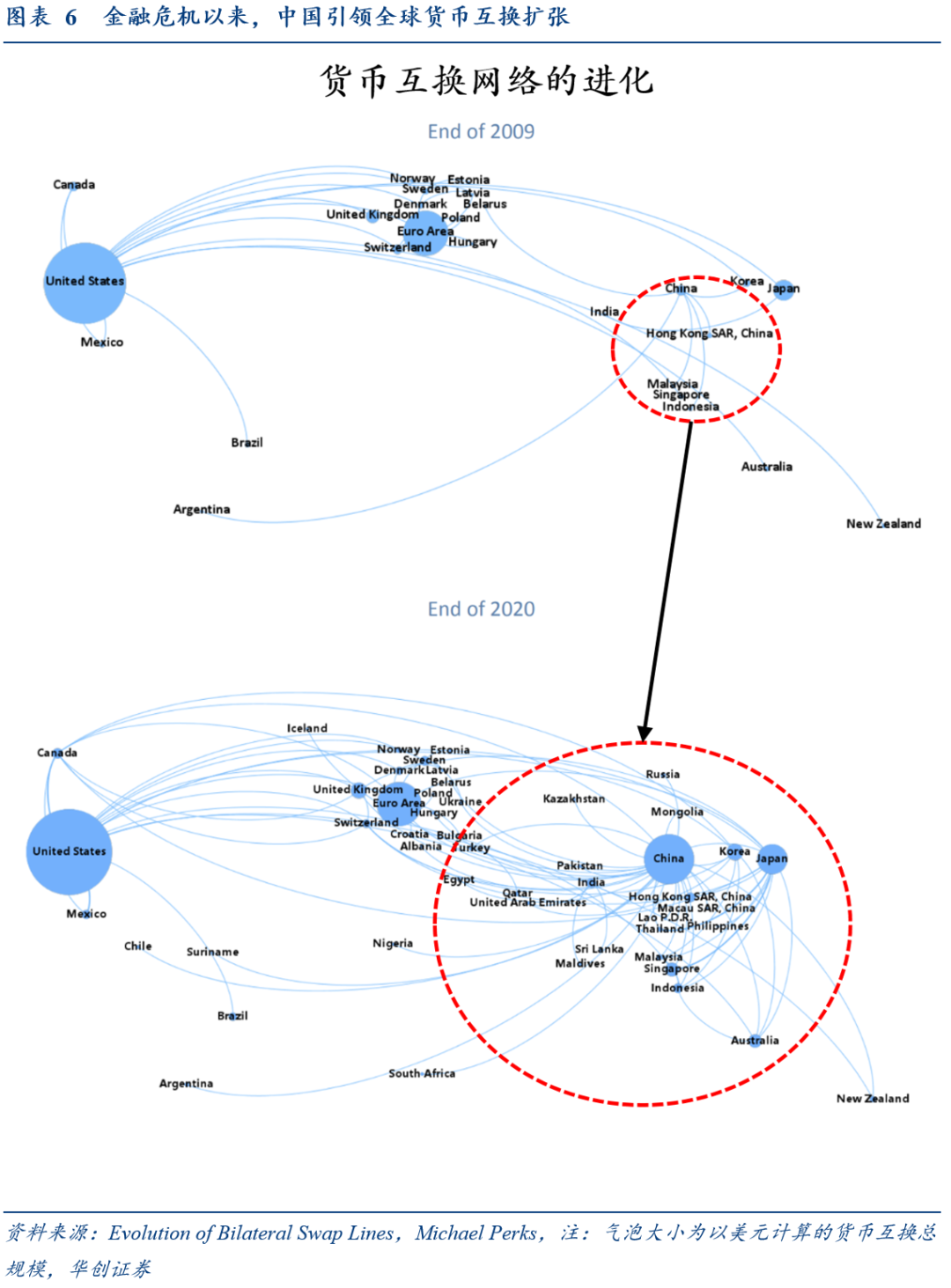 一是更多采用本币。金融危机以来,中国引领了货币互换网络(Bilateral Swap Lines)扩张。
