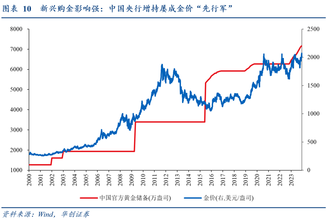 影响强。中国央行增持屡成金价“先行军”,本轮已连续13个月增持。