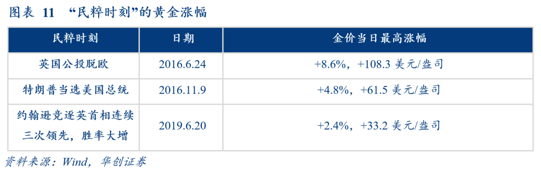 2016年来,西方民粹主义思潮崛起,而黄金在三次典型“民粹时刻”涨幅明显。