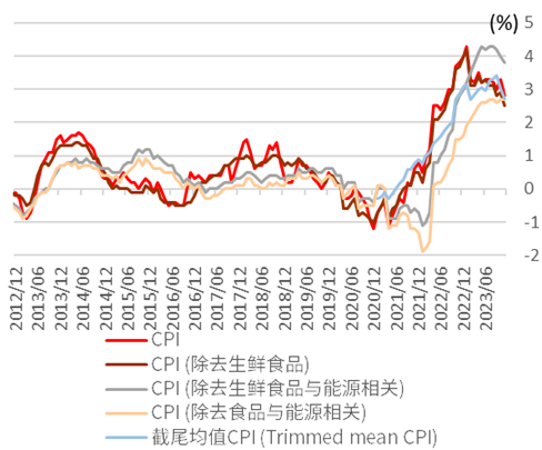 资料来源:日本总务省统计局,中金公司研究部图表2:日本各类通胀的同比走势