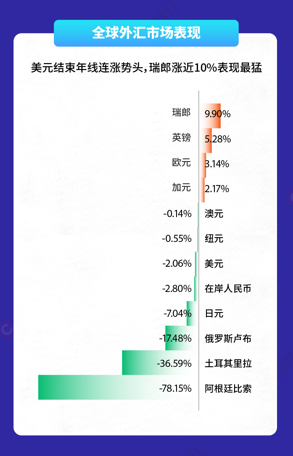 外汇市场方面,由于全球经济复苏和各国央行政策的不同,汇率波动较大。一些主要货币对比如美元兑瑞郎、美元兑日元等都出现了较大的波动。此外,由于地缘政治风险和贸易紧张局势的影响,一些新兴市场货币对也出现了巨大的起伏。