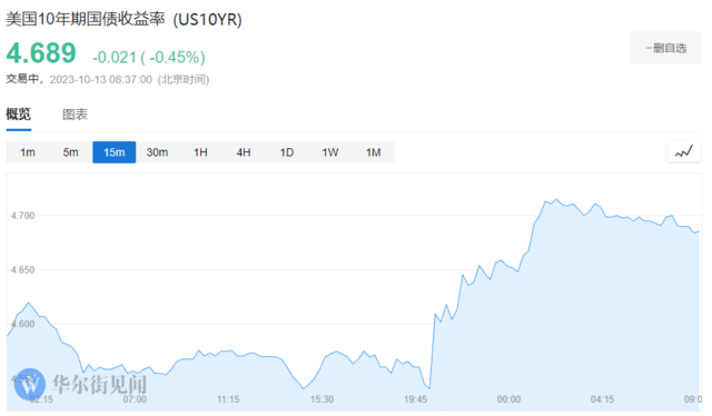 周四,10年期美国国债收益率盘中升破4.7%,一度较日内低位跳涨约21个基点;30年期美债收益率升至4.8%;对利率前景更敏感的2年期美债收益率升破5%。美股市场对标售表现疲弱做出了反应,三大美股指止步四连涨。