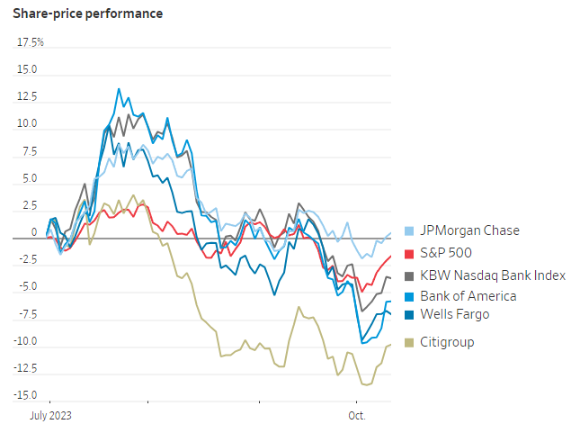 摩根大通、富国银行和花旗将于周五公布他们的第三季度业绩报告。美国银行和高盛将在下周二公布财报,摩根士丹利则在下周三公布财报。