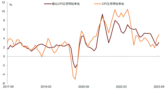 图表:美国CPI与核心CPI三个月环比年化增速反弹