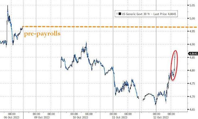 二级市场30年期美债收益率曾接近4.89%,较周四欧股盘前所创的9月29日以来低位回升超过20个基点。