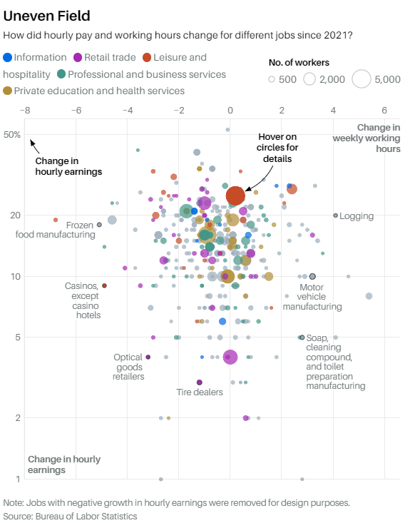 美国劳工统计局数据还显示,从2021年1月到今年9月,美国370多个追踪的职业类别中,只有近四分之一的职业工资增长超过了通货膨胀。