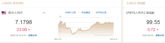 10月16日,人民币中间价报7.1798,下调23点,上一交易日中间价报7.1775。