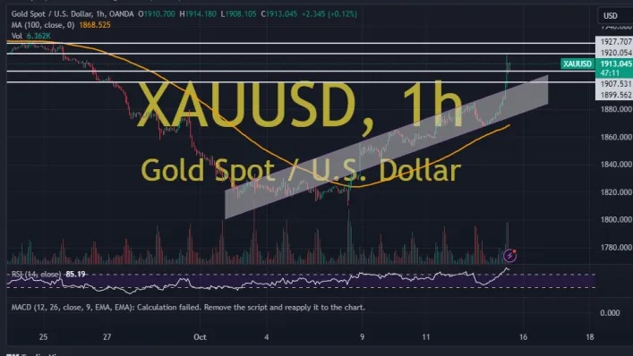 周一(10月16日)亚市早盘,现货黄金在上周五惊天暴涨后温和回落,金价目前交投在1925美元/盎司附近。知名财经网站FXDailyReport分析师Nicholas Kitonyi撰文,对黄金后市走势进行分析。