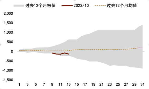 图表3:月初以来北向资金的累计净买入额(亿元)