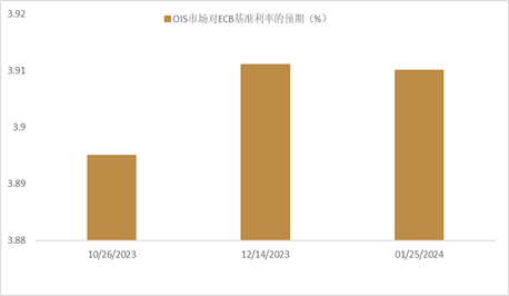 欧央行9月会议纪要表明加息周期或已结束 上周公布的9月ECB会议纪要显示 欧央行进一步加息的可能性较低。会议纪要显示,“大多数潜在通胀指标继续下降,这反映出此前供应瓶颈和冲击的影响正在消退,而这些指标也是未来通胀的最佳预测指标,目前这些指标处于较低的水平并继续大幅下降”。会议纪要还显示 ,“一系列基于模型的模拟表明,只要将欧元区存款便利利率(3.75%至4.00%)维持足够长的时间,就足以让通胀回归目标的水平”。此外,ECB管委会越来越担心欧元区经济放缓。“经济活动的减弱意味着经济正濒临衰退。虽然一些软指标(soft data)不像过去那么可靠,但这些经济指标恶化程度很大,这也意味着经济增长前景仍然不容乐观”。本次会议纪要还显示 ,“货币政策周期已经到了收紧过度的风险和收紧太少的风险变得更加平衡的阶段”。总的来看,我们认为,9月会上ECB上调存款利率至4.00%已是面临经济增长不确定性背景下的危险决策,之后ECB进一步加息的可能性较小。目前OIS市场也不再预期ECB会再次加息,而明年6月左右可能将会首次降息(图表11)。