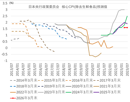 图表18:日本央行政策委员会核心CPI(除去生鲜食品)预测值