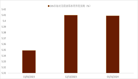 美联储官员鸽派表态 11月FOMC会议加息概率较低 随着美债利率近期的连续上涨,越来越多的美联储官员认为,美债收益率的大涨使得金融状况收紧,而这可以取代美联储基准利率的进一步上调。上周美联储鹰派官员,达拉斯联储主席Logan和美联储副主席杰斐逊均对此有所表态[9]。而亚特兰大联储主席Bostic上周也表示[10],他认为美联储不再需要加息。当前的货币政策具有限制性,足以使通胀率回到2%的目标。美联储应该停止加息,当前应该关注将利率维持在高位多久。而美联储理事沃勒则表示[11],较高的市场利率可能有助于美联储减缓通胀,并让美联储可以“观望”政策利率是否需要再次上调。目前OIS市场对美联储11月FOMC会议上依旧没有明显的加息预期。(图表13)