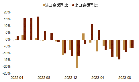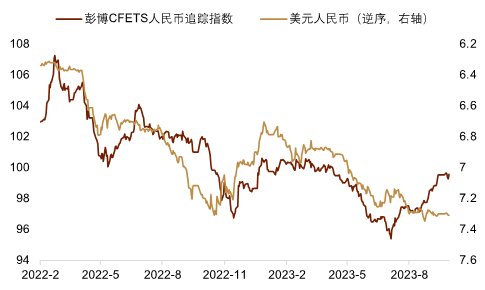 ►进出口方面,9月以美元计价的出口同比变动-6.2%,好于前值的-8.8%和市场预期的-8%,以美元计价的进口同比变动-6.2%,好于前值的-7.3%和市场预期的-6.3%(图表7)。从出口对象来看,9月对发达国家的出口金额有明显恢复,从出口商品看,汽车(包括底盘)、汽车零配件、家用电器等商品呈现较高增速。往后看,中金宏观组认为在美国制造业和库存周期企稳改善背景下,中国后续出口有望得到支撑(详情参考《2023年9月进出口数据点评》)。我们认为偏强的外需或有助于我国货物贸易顺差优势的进一步累积,并在中长期逐步释放成为支撑人民币汇率的力量。