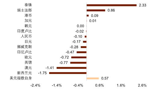 图表1:上周主要货币变化率(%)