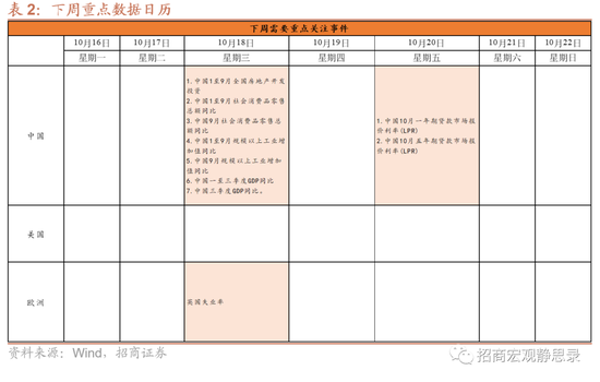 二、下周重点数据和事件展望