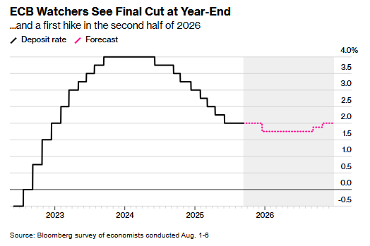 彭博社最新调查显示,欧洲央行决策者预计将维持利率政策至12月,届时实施的降息很可能是本轮宽松周期的收官之举。