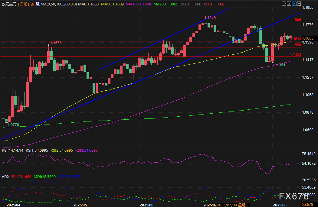 初步支撑位:1.1609,与50日均线一致,该区域可能在短期回调时充当临时技术屏障,价格守在该水平上方对于保持看涨倾向至关重要。