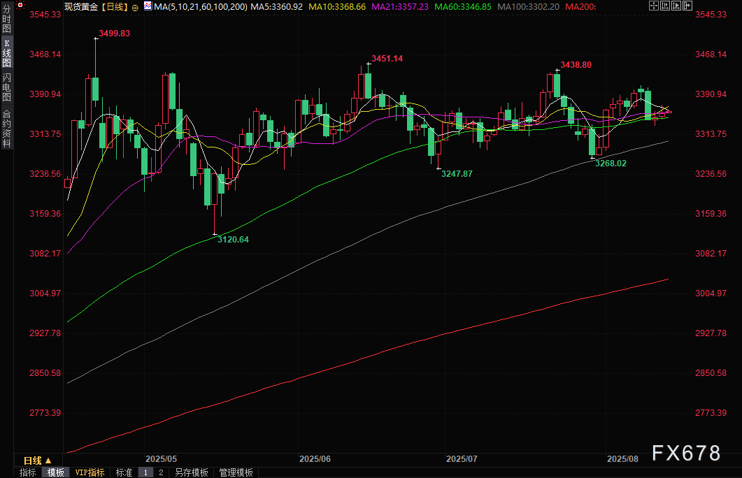 周四(8月14日)亚市早盘,现货黄金窄幅震荡,目前交投于3360美元/盎司附近。周三现货黄金价格反弹受阻,盘中一度触及3370美元/盎司关口,最终收盘报3355.90美元/盎司,涨幅达0.24%。美国财长贝森特认为,美联储9月有降息50个基点的可能,市场对美联储9月降息的达成普遍共识,推动美元指数的持续走软、美国国债收益率下降,给金价提供支撑。然而,美股的持续创新高和地缘政治紧张局势的潜在缓和,一定程度上抑制了黄金的避险需求。