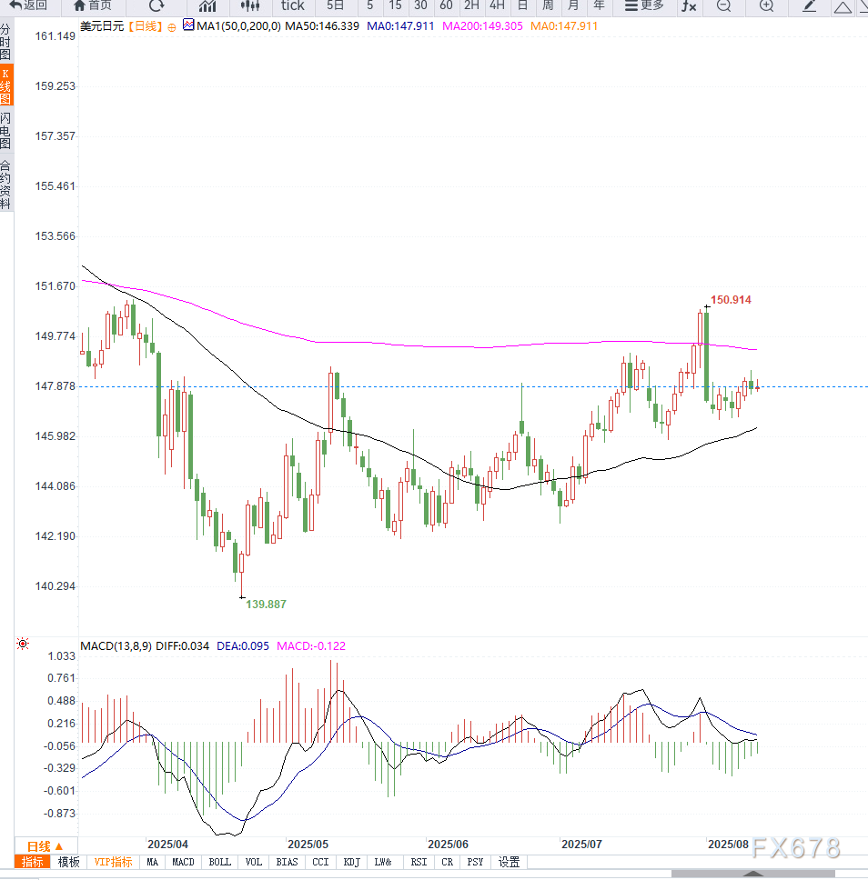 美元兑日元目前处于多空力量博弈区间,上方空间取决于全球风险情绪能否持续,以及日本央行加息预期是否进一步延后。若美联储在9月释放更强降息信号,可能压制美元反弹高度,使汇价在接近149关口时面临阻力。