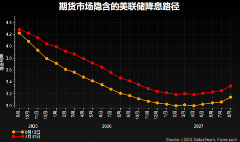 数据公布后,利率市场隐含的美联储9月降息概率接近100%,市场对未来利率路径的判断相较7月美联储会议后变得更为鸽派。在通胀可控的情况下,疲弱的就业数据给美联储提供了降息的理由。