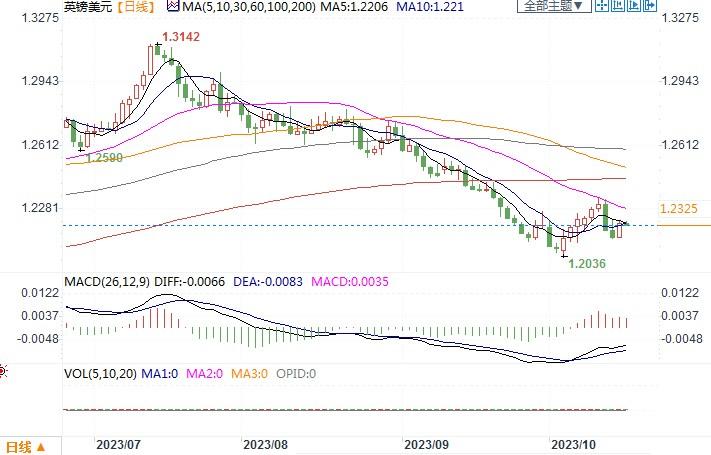 周一(10月16日),英镑/美元上涨0.07%,报1.2154,略微脱离10月初触及的六个月低点1.20535。本周英国将要发布的主要宏观经济数据是周三公布的英国消费者物价指数(CPI),以及周二的就业数据。投资者将密切关注这些数据。今年上半年英国通胀顽固,推动市场预期英国央行持续升息时间将超过其他央行,英镑因而获得支撑。近几个月来,随着市场对加息预期的减弱,英镑走软,尽管市场认为本轮周期仍有一次升息25个基点的可能性约为50%。对英国利率长期维持高位的预期曾对英镑产生支撑抬捧作用。但我们仍警惕推动汇率力量已从利率转向相对增长。世界各地市场都极度依数据而动,一旦经济或通胀数据与预期不符,市场就会做出剧烈反应。因此,近期我们更应该关注来自英国的经济增长情况。日线图上,MACD、RIS技术指标有自超卖区域抬头之兆,呈现近期英镑在低位区域抵抗较为顽强。但上方1.23附近的压力较重,如不能突破,恐怕还是维持近期在低位区域震荡的走势格局。