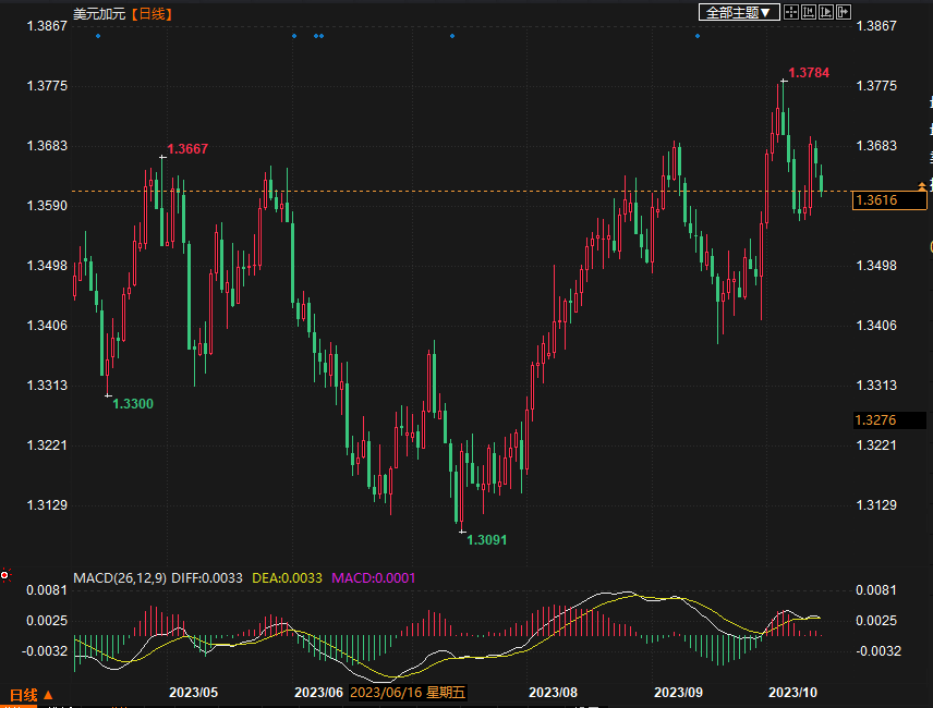 (美元/加元汇率走势图)