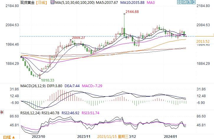 周二(1月16日)金价周二下跌逾1%报每盎司2,027.26美元,全日下挫30美元。黄金当日下跌主要受累于美联储理事沃勒对今年降息发表鹰派言论,美元走强且美国公债收益率上升。