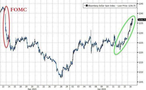 降息预期受创,美元指数上涨近1%,至一个多月高位,几乎完全抹去了FOMC会议纪要公布后的跌幅。