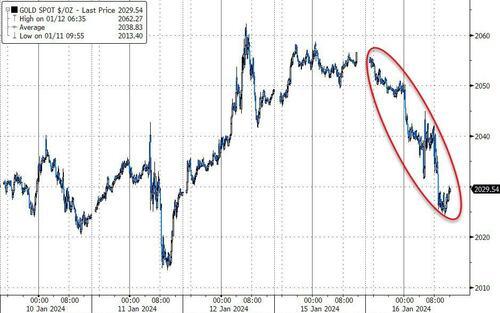 强势美元削弱了黄金的吸引力。现货黄金下跌1.3%,至每盎司2027.26美元,结束了连续三个交易日的上涨。