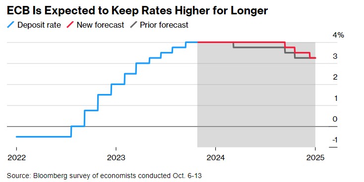 最新调查的结果与欧洲央行官员近日来发表的言论一致。欧洲央行管理委员会成员Martins Kazaks表示,目前的经济预测与2024年上半年降息不一致,“明年下半年,我们将拭目以待。”
