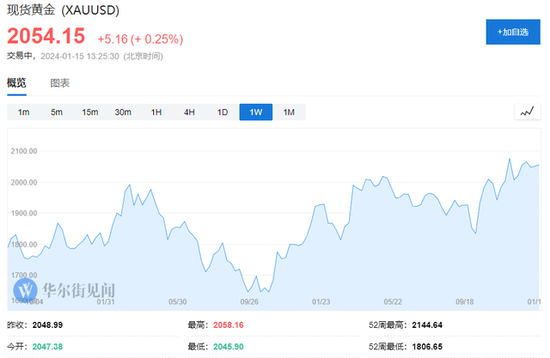 过去一年,黄金在一众资产中表现亮眼,全年累计涨幅超15%,最高价一度冲破2100美元/盎司,创下历史新高。