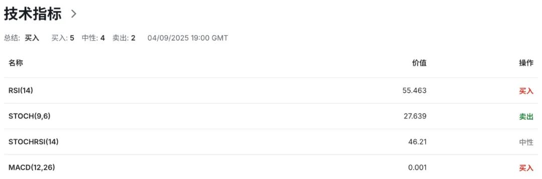 技术指标显示,日线级别布林带上轨切入点指向的1.3895区域水平为汇价提供短期动态阻力,中轨运行线指向1.3800区域水平为其走势界定潜在强弱分化,布林带下轨指向的1.3710区域水平为汇价提供短期动态支撑。当前汇价由下至上上穿布林带中轨区域上方运行,显示多头动能的初步修复迹象。布林带开口未见明显扩张现象,表明短期波动率维持相对平稳。此外,14日RSI相对强弱指标处于55.50附近区域,与布林带指标共同验证当前多头力量占据微弱优势,短期内汇价具有潜在上行潜力。