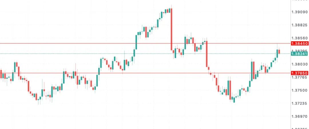 4小时级别来看,美加短线阻力构筑于1.3845区域水平,日内汇价需若能够突破该区域限制,有望上行对1.3920高点区域发起挑战。下行结构来看,下方1.3785区域水平构成汇价短线支撑,日内汇价若失守于该区域防线,将面临下行测试1.3735/1.3720区域水平之风险。