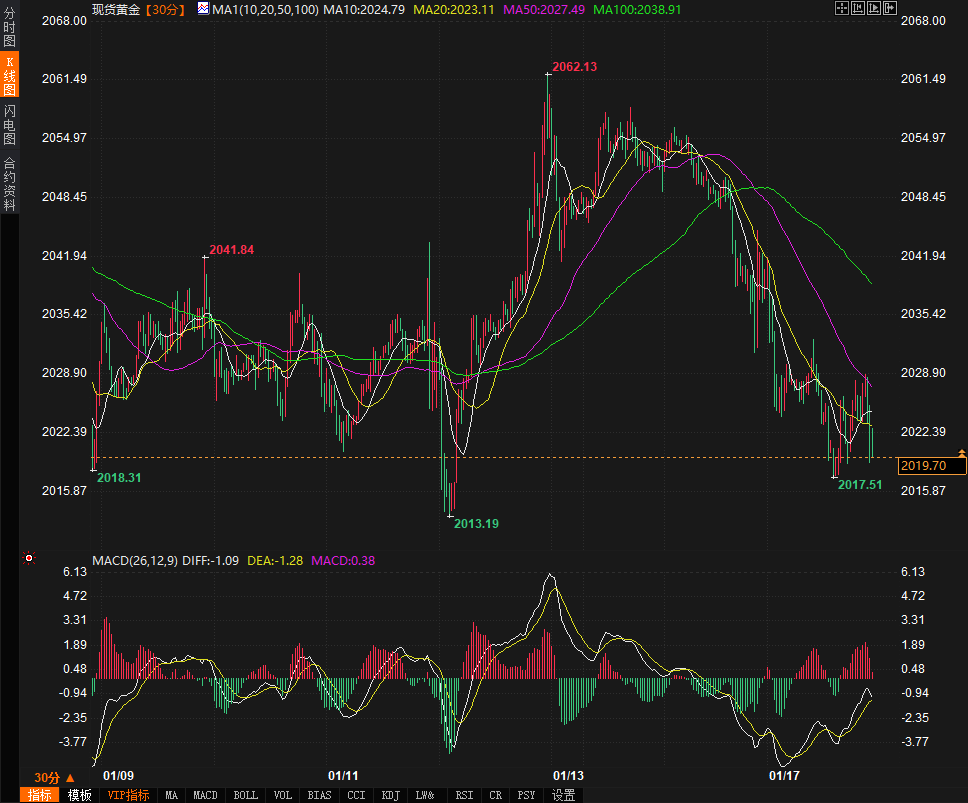 (现货黄金30分钟走势图 图源:易汇通)