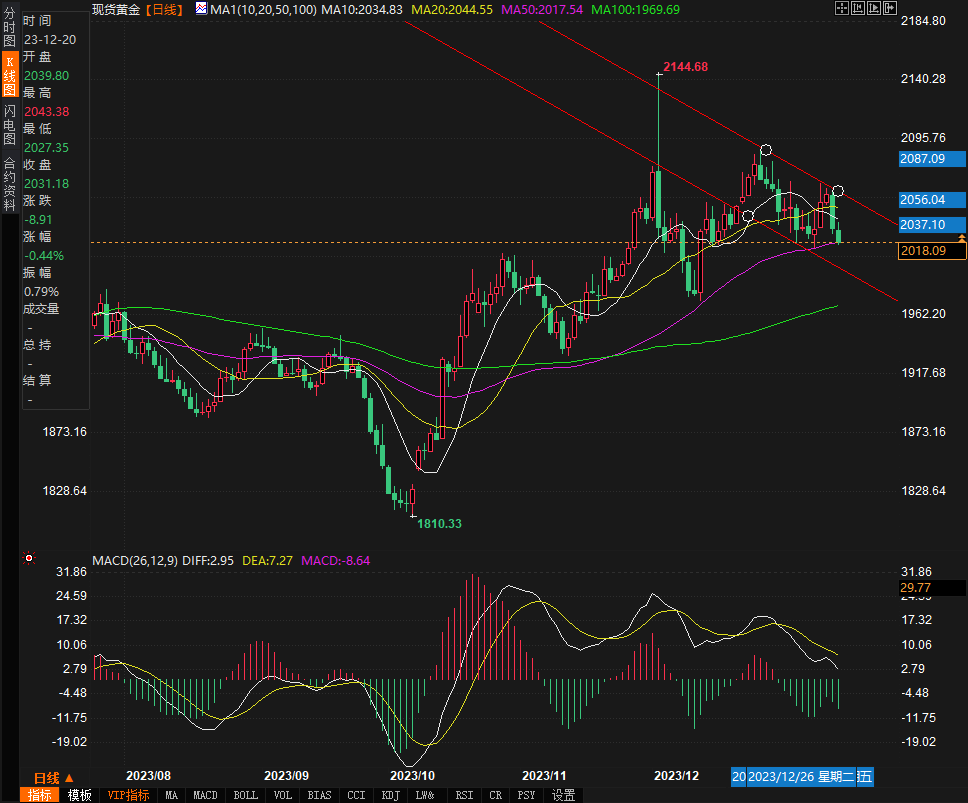 若金价突破2046美元/盎司,将出现新的买入机会,使金价重新测试2050美元/盎司的心理水平。
