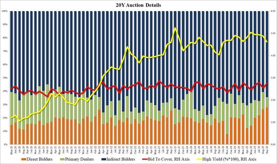 作为承接所有未购买供应的“接盘侠”,一级交易商(Primary dealers)本轮获配比例仅为7.6%,是历史最低水平之一,凸显实际需求强劲。