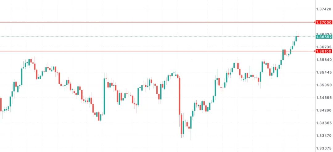 结合4小时技术结构分析,汇价在有效站稳1.3600结构性阻力上方后持续走强,在布林带与RSI等多重指标共振看涨的背景下,短线仍有望延续偏强走势。上方初步阻力位于1.3690/1.3700价格区域,如有效突破1.3700区域,或将进一步上探1.3750乃至更高水平。下行方面,首要支撑关注1.3610区域形成的短线支撑带,若该区域水平失守,空头目标将指向1.3580区域。值得警惕的是,1.3580区域水平与布林带中轨重合,一旦汇价跌破该水平,可能引发更深度的技术性回调,下行目标或进一步指向1.3540甚至是更低水平。