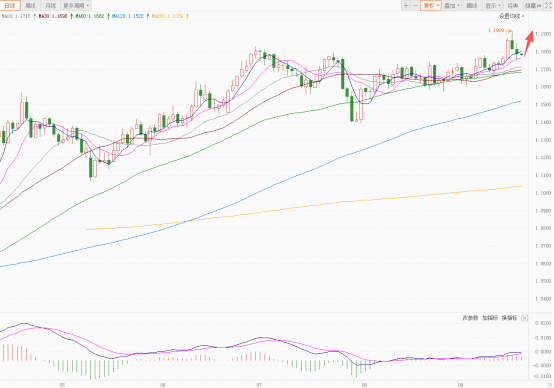 欧元兑美元价格从前期1.0177的新低开始筑底反弹,一路震荡上涨,目前欧元对美元整体全部运行在MA250日均线上方,呈明显的多头趋势。日内短线行情则建议看多震荡上涨的走势。