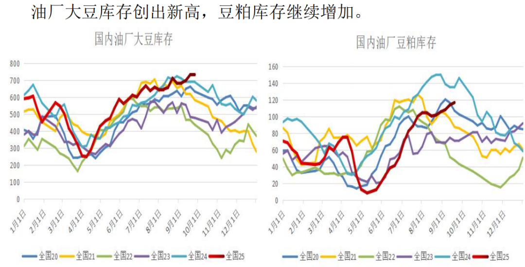 现在国内的豆粕的库存也是在持续上升中。