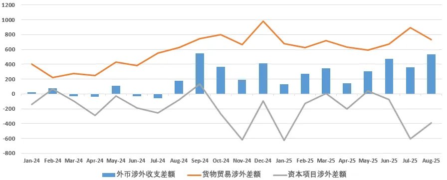 我们用1-8月数据,结合往年情况,分析国际收支视角下的结汇压力。