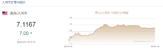1月19日,人民币中间价报7.1167,上调7点,上一交易日中间价报7.1174。