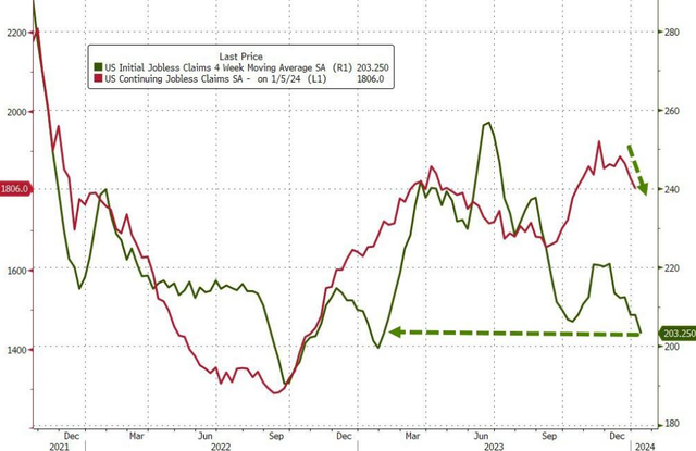 美国上周初请失业金人数降至新低可能暗示1月就业增长可能保持稳健,并可能促使金融市场进一步缩减对3月降息的押注。在新冠疫情之后,雇主普遍不愿裁员,因为他们很难找到劳动力。