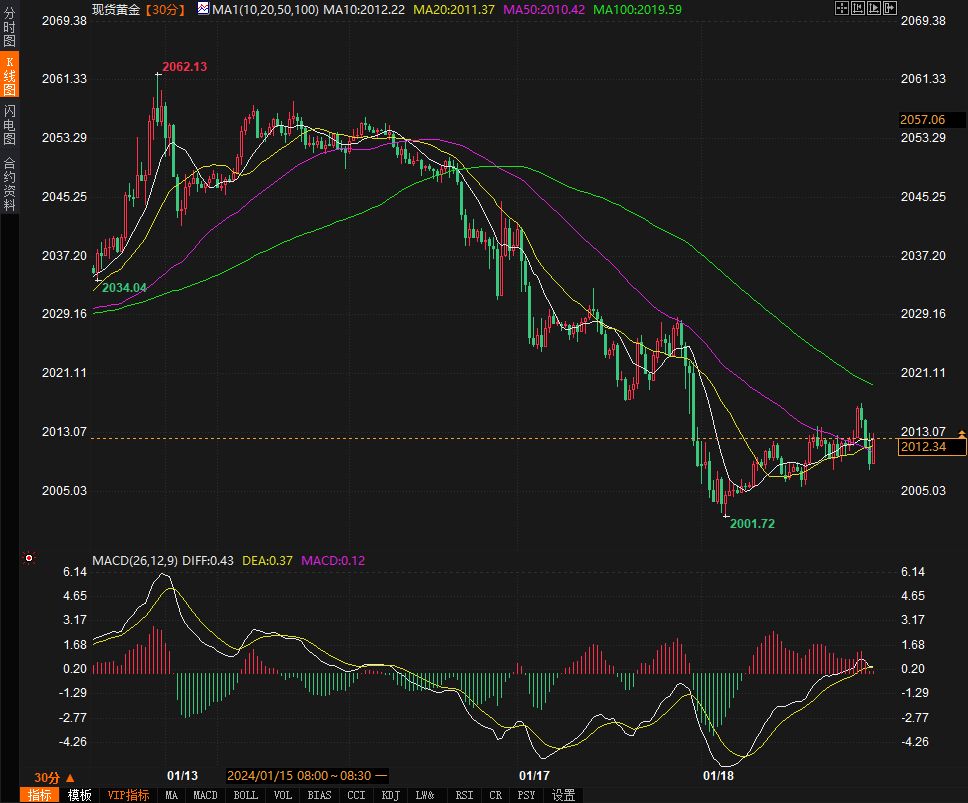 COMEX最活跃黄金期货合约北京时间1月18日21:30--21:31一分钟内买卖盘面瞬间成交2311手,交易合约总价值4.65亿美元。