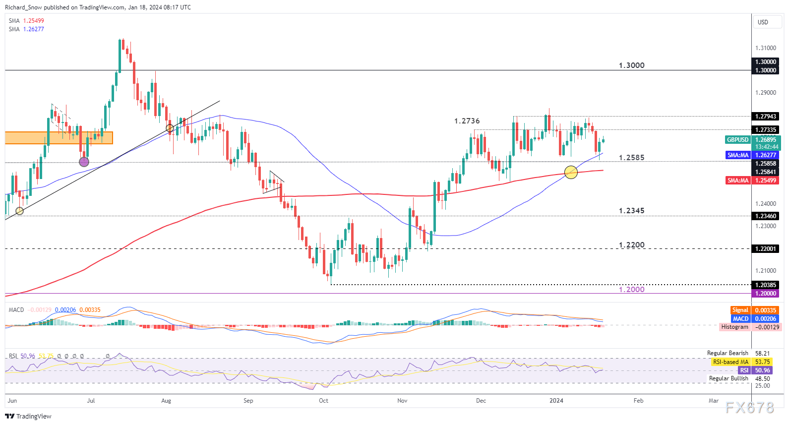 相对强弱指数在50上下且出现黄金交叉,表明该货币对有望进一步上涨。