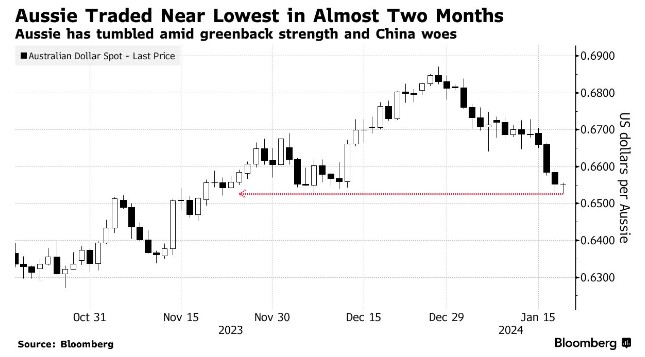 IG驻悉尼市场分析师Tony Sycamore表示,“毫无疑问,就业市场正在降温,且在近期通胀数据走软后,澳洲联储即将降息。”“定于1月31日发布的通胀数据将决定澳大利亚央行两次降息25个基点的预期是否会在2024年变成三次。”