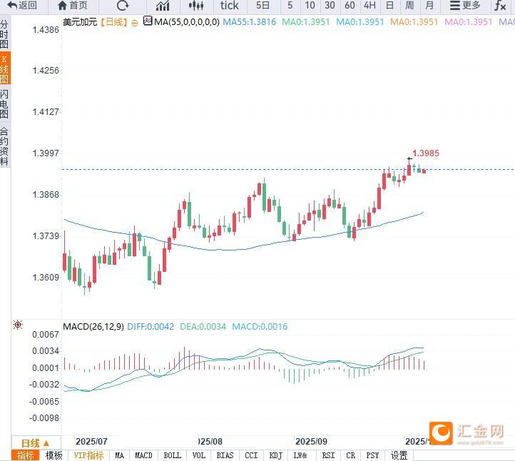 美元兑加元(USD/CAD)在亚洲早盘保持升势,报1.3950附近,受美元反弹提振。然而,市场对美国政府长期停摆的担忧,以及国际油价持续回升的走势,令汇价上行空间受限。