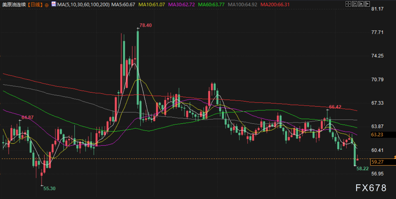 布伦特原油期货结算价下跌3.82%,报每桶62.73美元,盘中创5月初以来的最低水平。美国原油期货结算价下跌4.24%,报每桶58.90美元,盘中也创下5月初以来最低。
