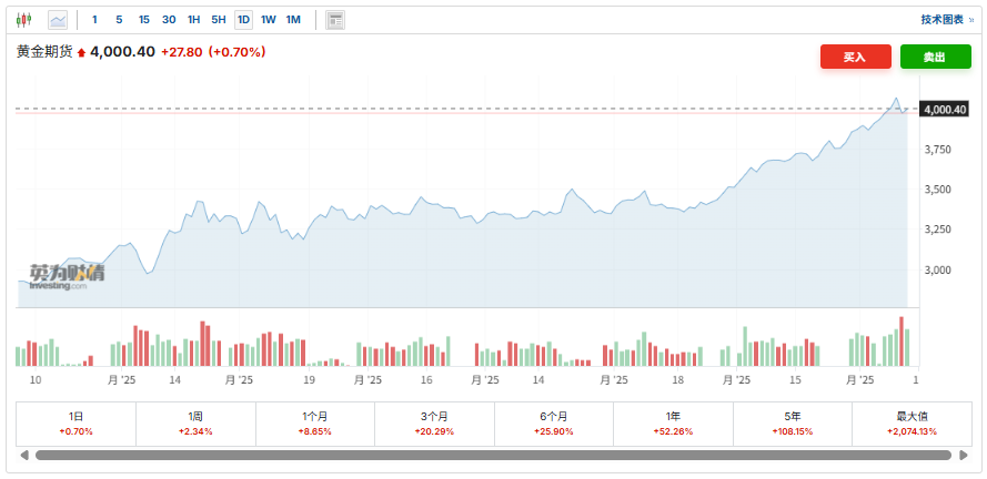 过去12个月内,黄金价格飙升51%,突破4000美元大关。同期,美元对一篮子主要货币的汇率则下跌超过10%。与此同时,作为能够对冲通胀风险的资产,股票市场也屡创新高。