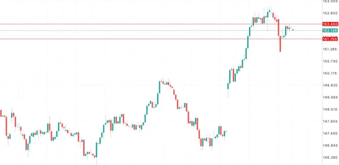 周一交易时段,美元兑日元波动表现平稳。日内最低测试151.71水平,截止收市最高触及152.44水平。